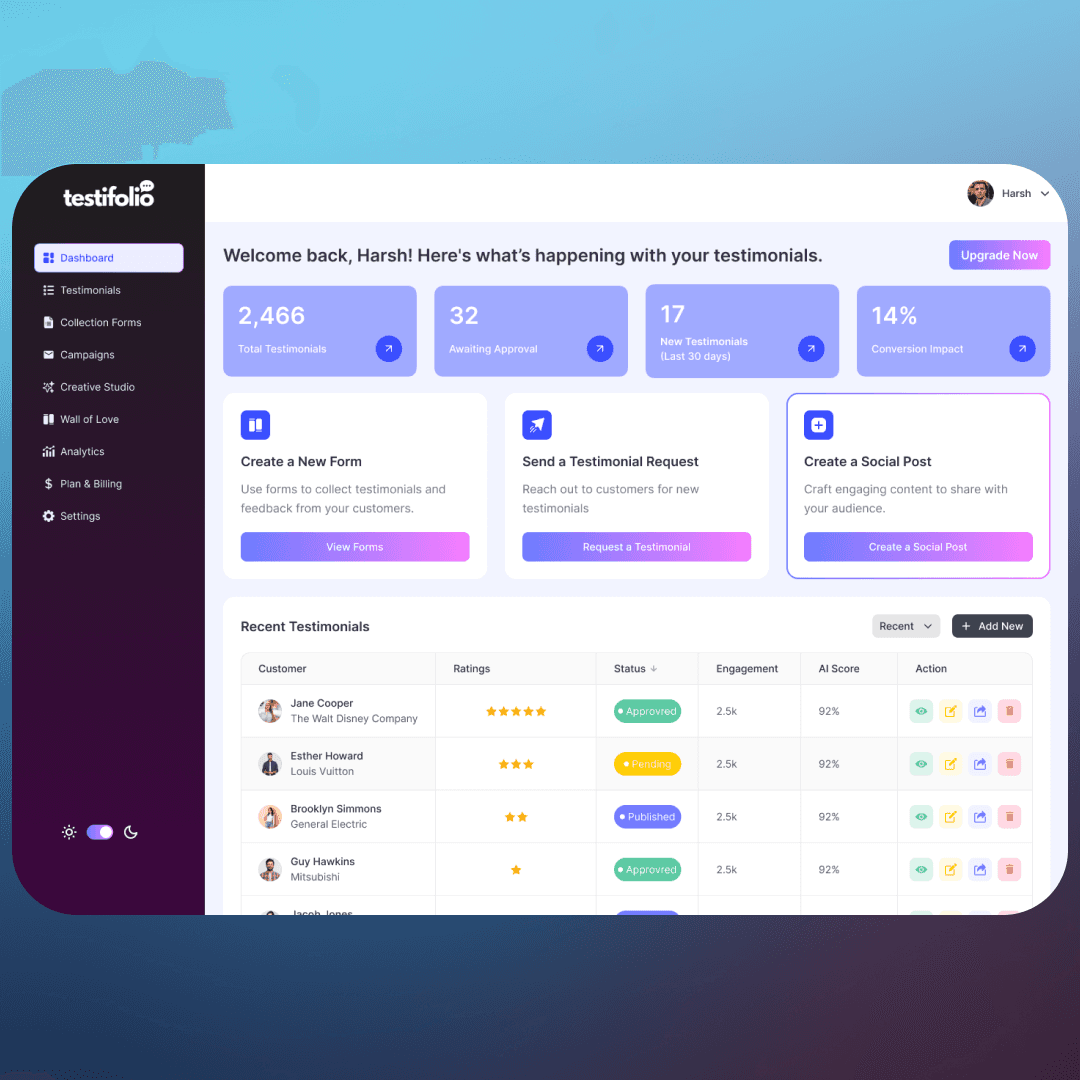 Collect, manage, and transform testimonials into trust-building content in minutes.