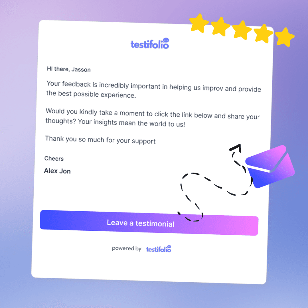 Ask for feedback without the awkward follow-ups. Send beautifully branded email invites to customers at the right time! Perfect for post-purchase, after onboarding, or following a successful campaign.