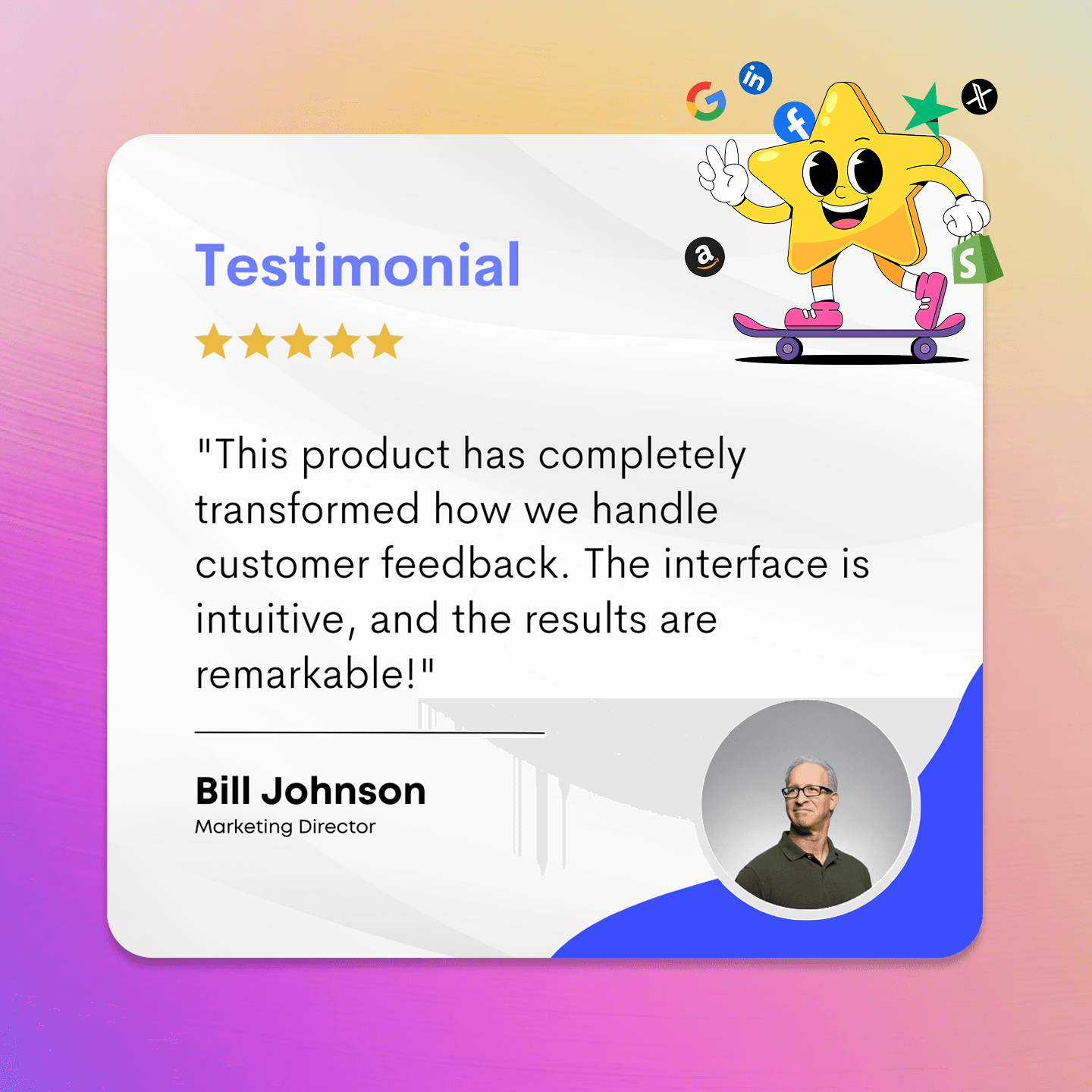 Turn your best testimonials into scroll-stopping social posts. No design team? No problem. Generate beautiful, on-brand static assets ready to share on Instagram, LinkedIn, or your next email campaign.