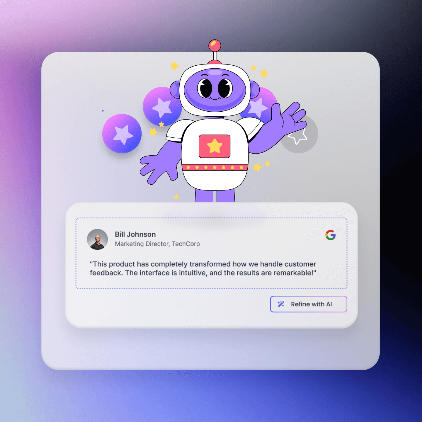 Use AI-powered forms that auto-adapt to your brand and tone, ask the right questions, and help customers leave better, more specific testimonials.
